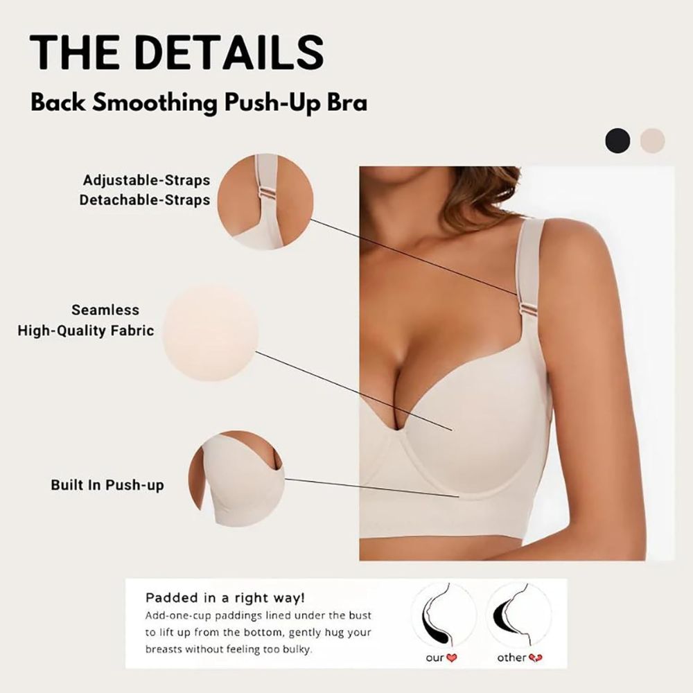 Discover the ultimate blend of comfort, support, and elegance with our Back-Smoothing Push-Up Bra. Specially designed for plus-size women and F cups, this bra features a wide band that smooths back bulges, creating a seamless silhouette under any outfit. The push-up cups naturally lift and enhance your bust, while the shaping design offers long-lasting comfort and confidence. Perfect for everyday wear or special occasions, it’s the lingerie essential every woman deserves.